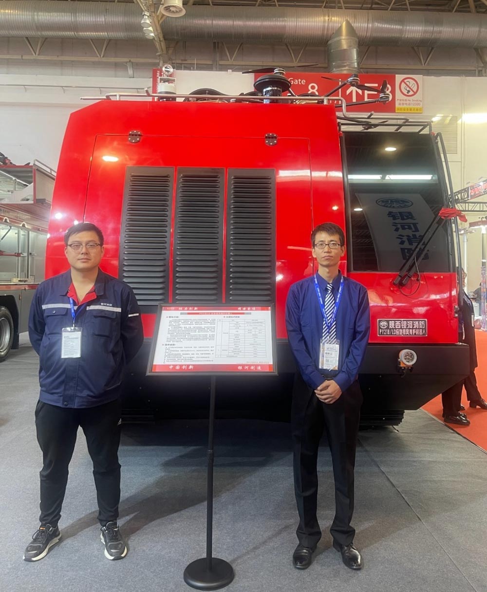 銀河消防公司此次參展新品積極響應(yīng)“全災(zāi)種、大應(yīng)急”指導(dǎo)方針,從市場(chǎng)需求出發(fā),秉承先進(jìn)、實(shí)用、穩(wěn)定、高效設(shè)計(jì)理念,從高層建筑滅火、石化搶險(xiǎn)排風(fēng)掩護(hù)、機(jī)場(chǎng)消防滅火和多功能城市主戰(zhàn)等方面入手,研發(fā)出無人機(jī)壓縮空氣泡沫消防車、應(yīng)急排風(fēng)掩護(hù)機(jī)器人、機(jī)場(chǎng)高壓噴霧消防車、多功能搶險(xiǎn)救援車四款新品車型。無人機(jī)壓縮空氣泡沫消防車和應(yīng)急排風(fēng)掩護(hù)機(jī)器人以設(shè)計(jì)理念新穎、外形獨(dú)特、智能化程度高、技術(shù)領(lǐng)先、實(shí)用性強(qiáng)等特點(diǎn)一經(jīng)亮相便吸引眾多目光,成為本次展會(huì)備受矚目的明星產(chǎn)品,吸引了多批專家和行業(yè)人士前來觀摩。