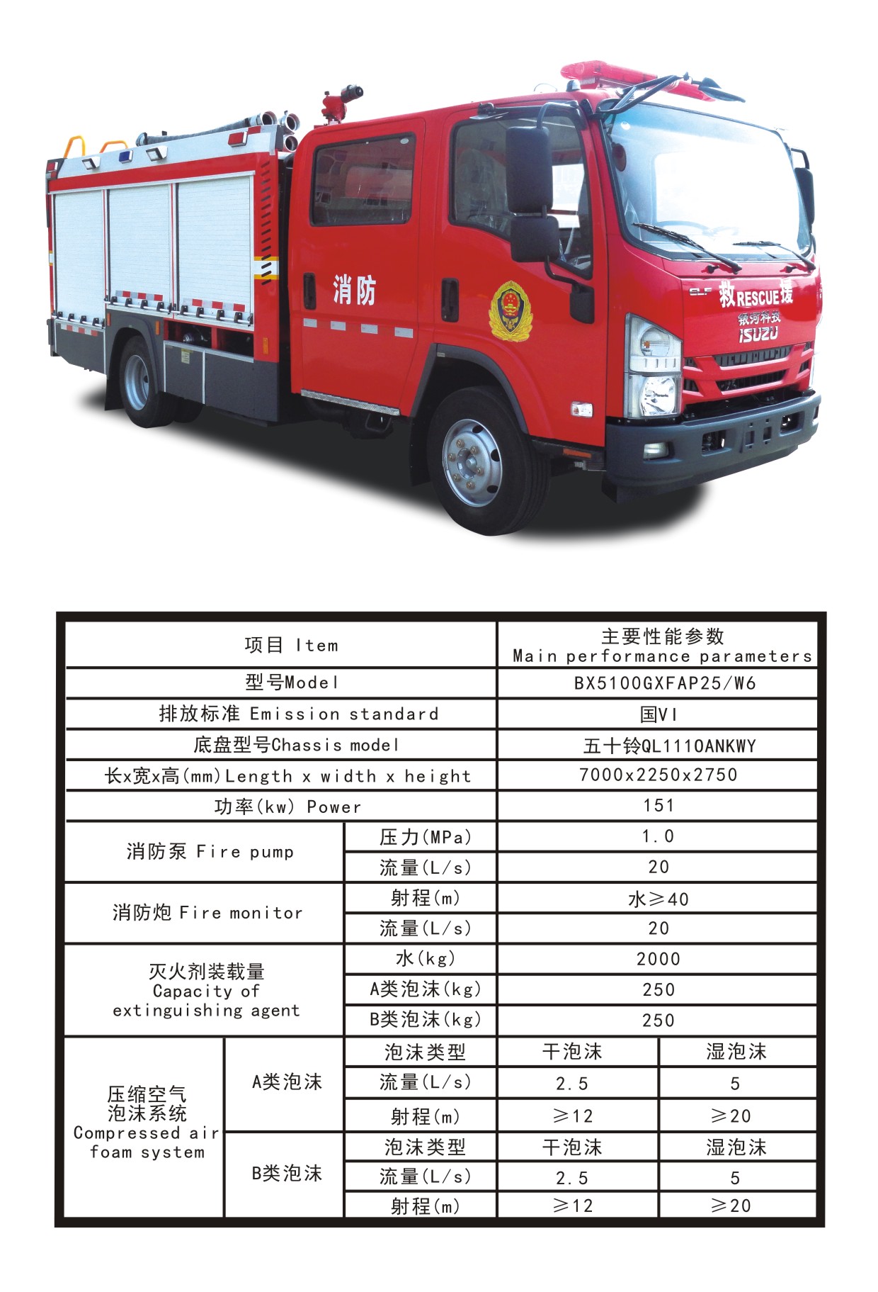 BX5100GXFAP25/W6壓縮空氣泡沫消防車(chē)